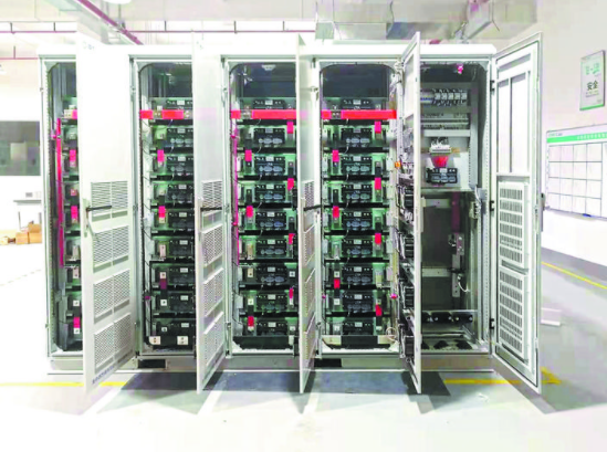 為確保項目可行性,攻關(guān)團隊先在實驗室完成50千瓦樣機各項功能試驗后,再進行500千瓦超級電容微儲能裝置的研制。該裝置主要由超級電容模塊、電力電子變流器和快速功率控制器三部分組成??焖俟β士刂破骺稍?0毫秒內(nèi)完成頻率檢測,電力電子變流器可在2毫秒內(nèi)實現(xiàn)有功功率的快速、精準支撐,并且電力電子變流器集成了電網(wǎng)諧波主動抑制、無功功率靈活調(diào)節(jié)功能,讓該裝置成為集儲能與電能質(zhì)量管理于一體的新型補償裝置。今年2月7日,這套變電站超級電容微儲能裝置投入使用。